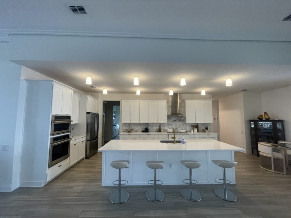 This Winter Garden lakefront home underwent a complete kitchen transformation and the addition of a brand-new custom bar, designed and built by KBF Design Gallery.