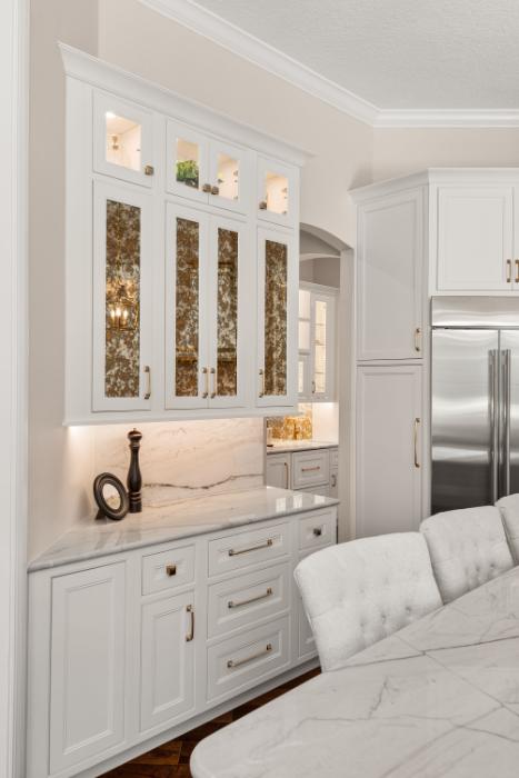 Step into the stunning transformation of this luxurious Winter Springs home, where we brought the kitchen and dining space to life with custom features, layered textures, and elevated finishes. From soft lighting to a seamless layout, every detail was carefully curated to create a space that feels cozy, refined, and perfect for making memories for years to come!